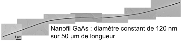 La croissance HVPE assistée de métal catalyseur Au ou Au-Ni qui met en jeu un système à trois phases vapeur-liquide-solide (VLS), produit des nanofils très longs en des temps de procédé très courts, à des vitesses de solidification axiale allant de 100 à 200 µm/h. Ces nanofils sont de diamètre constant et de phase cristalline constante (pas de polytypisme) :